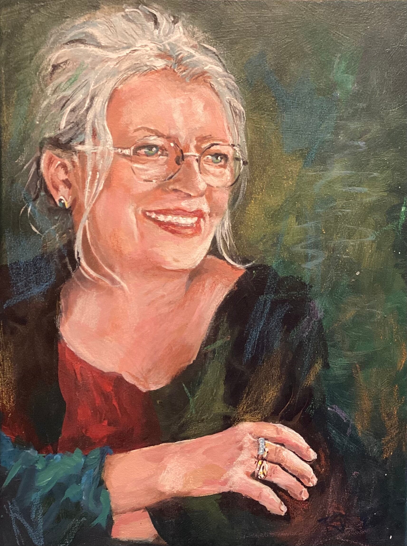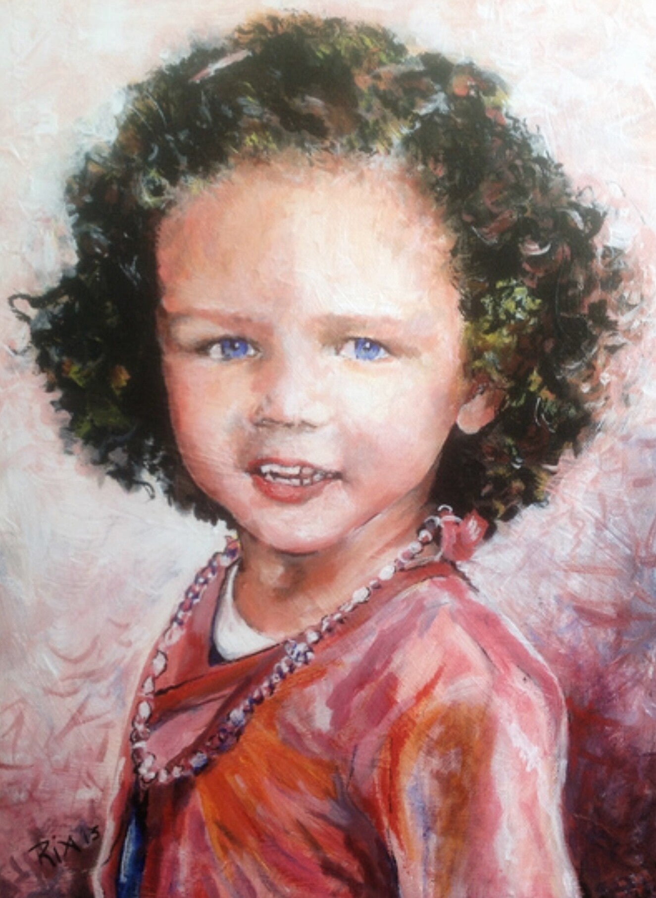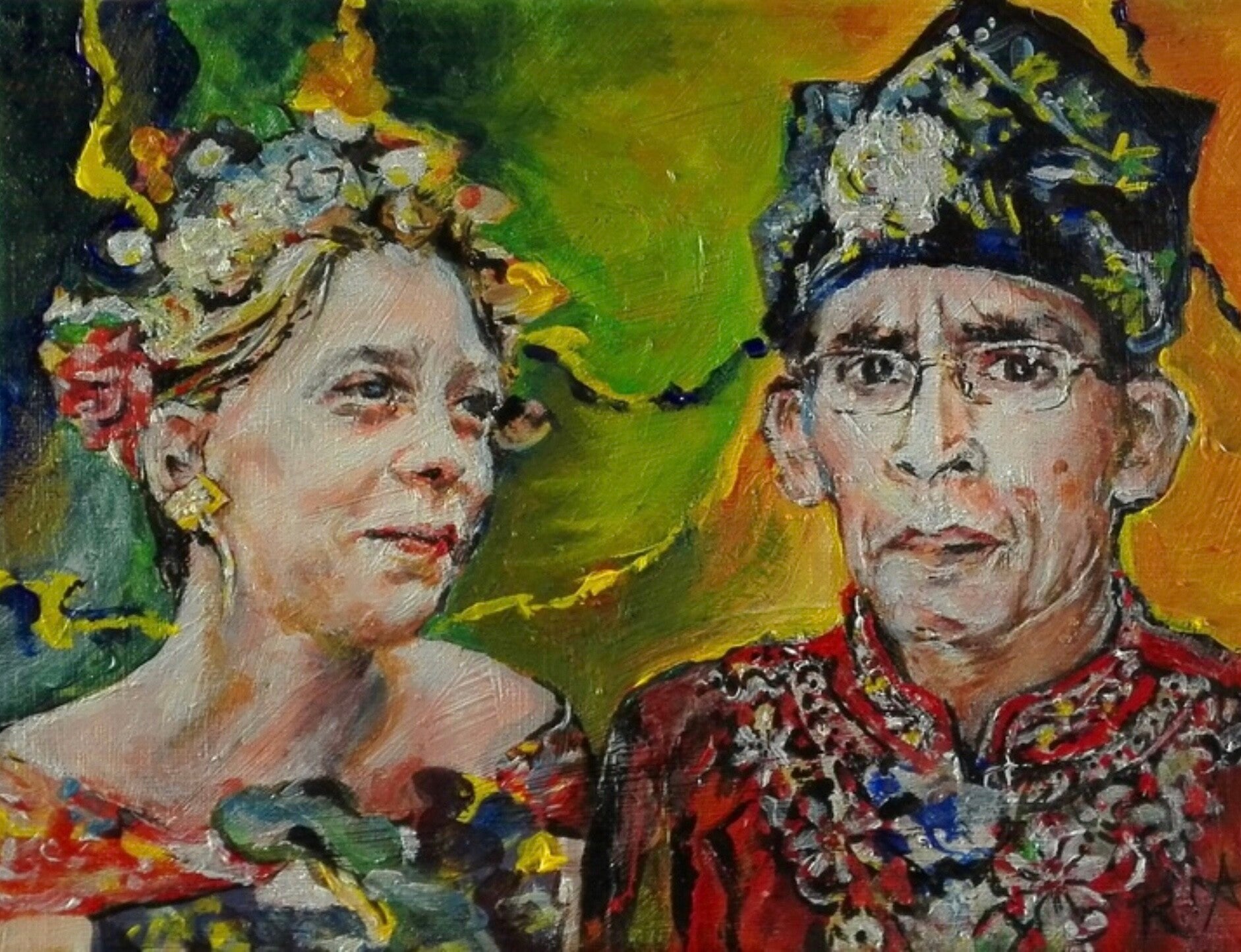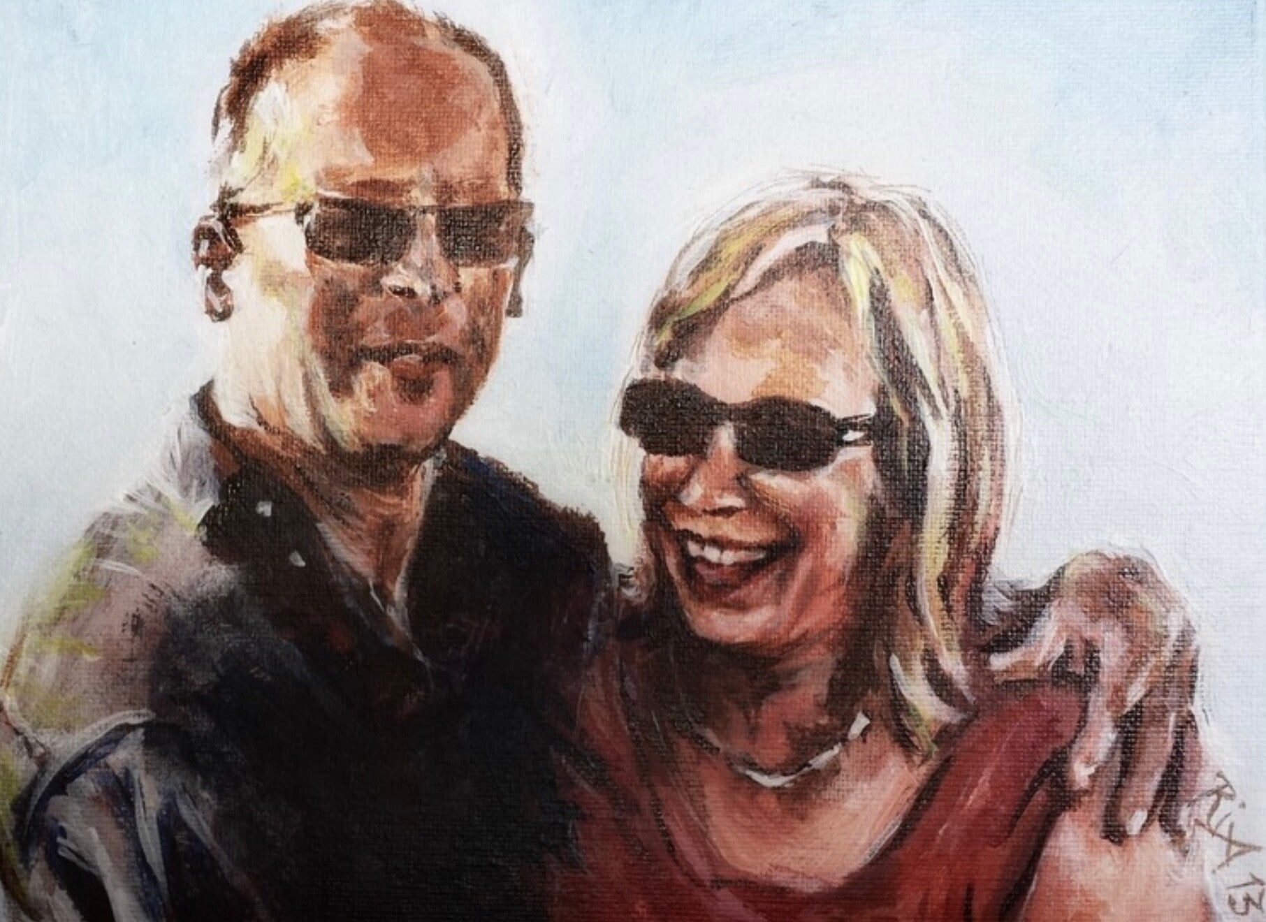 Op verzoek van de cliënt is dit portret geschilderd in de stijl van het werk van Henk Roozendaal (rechts)