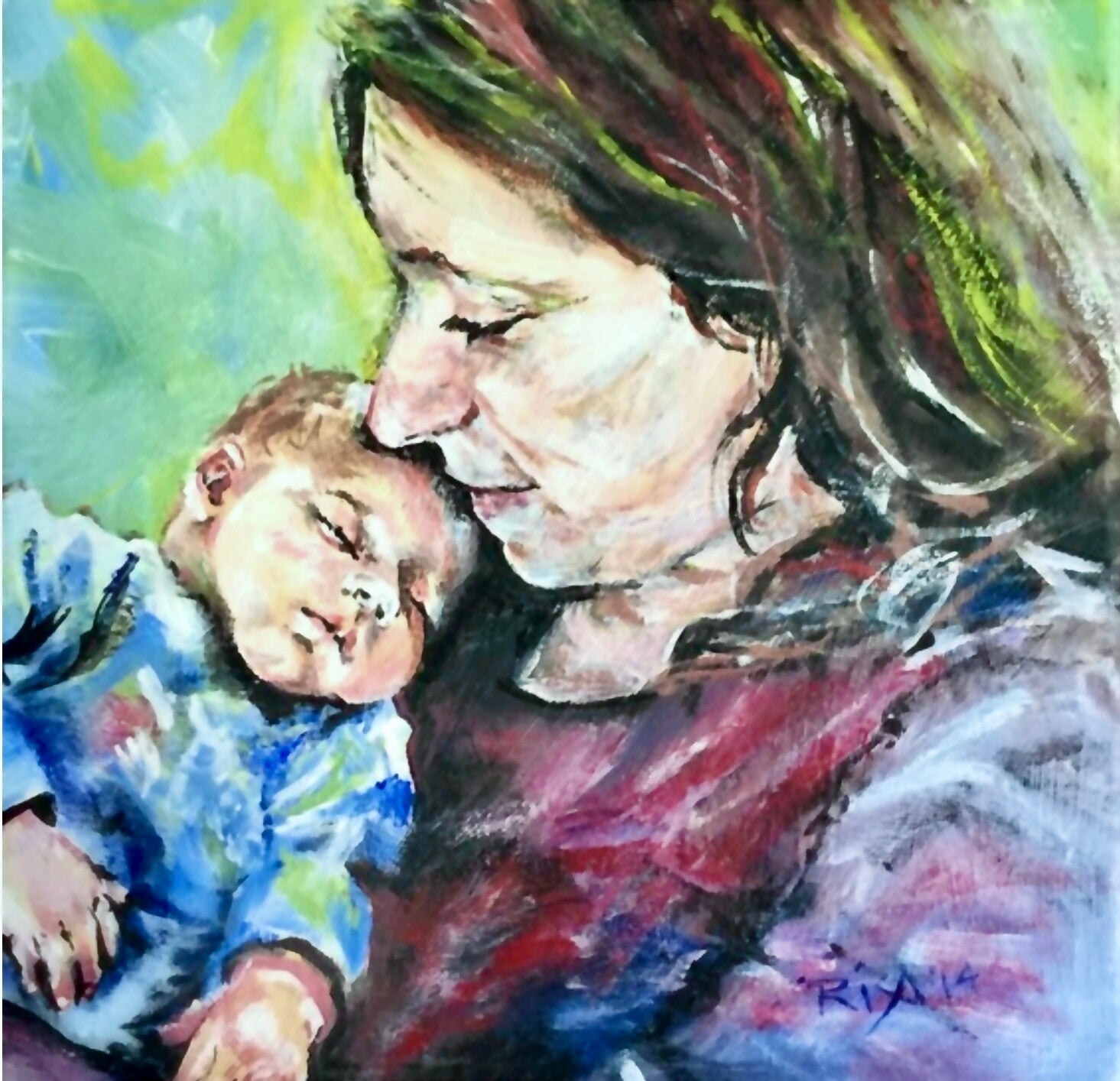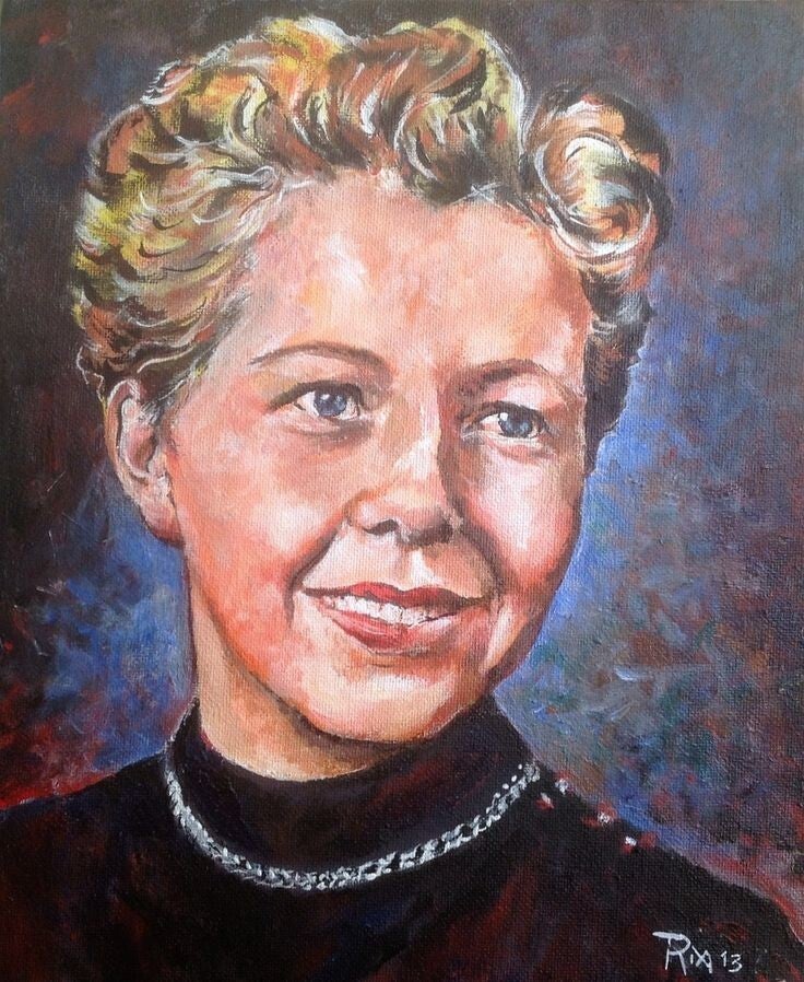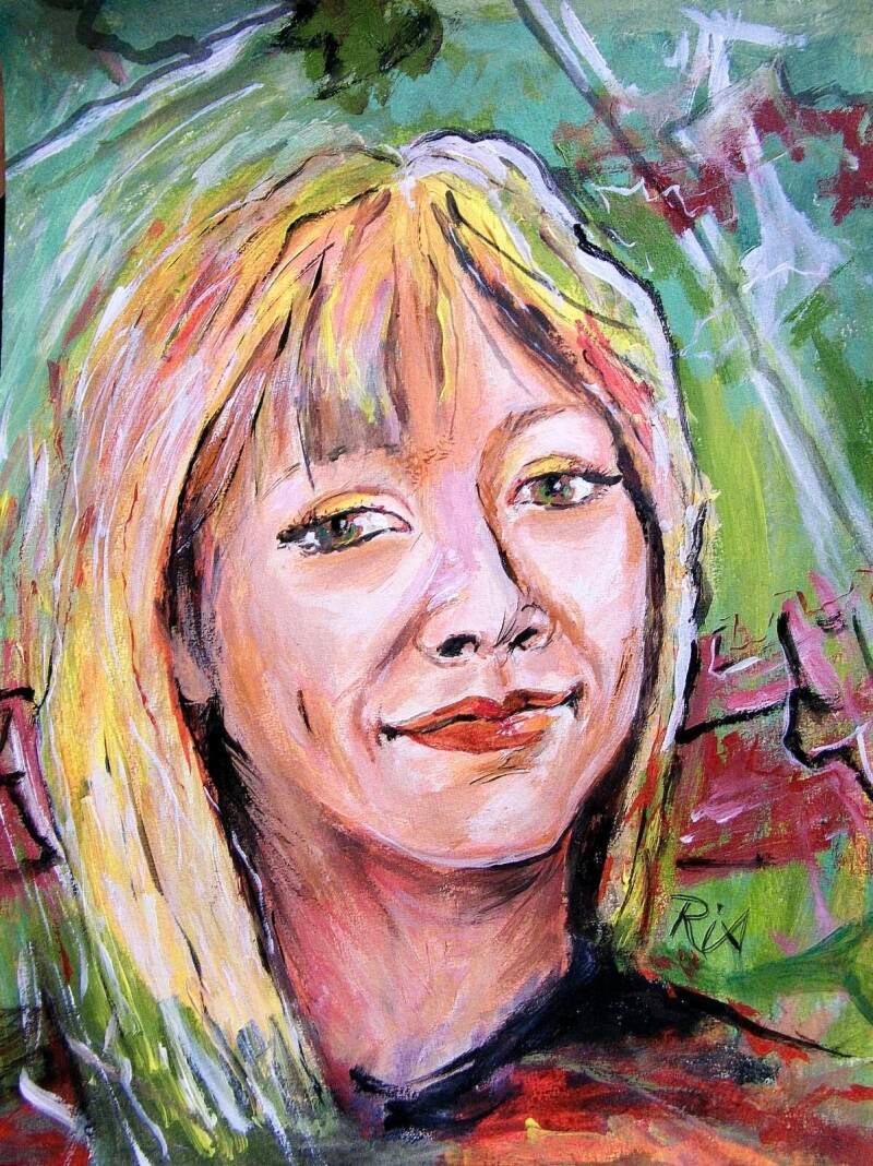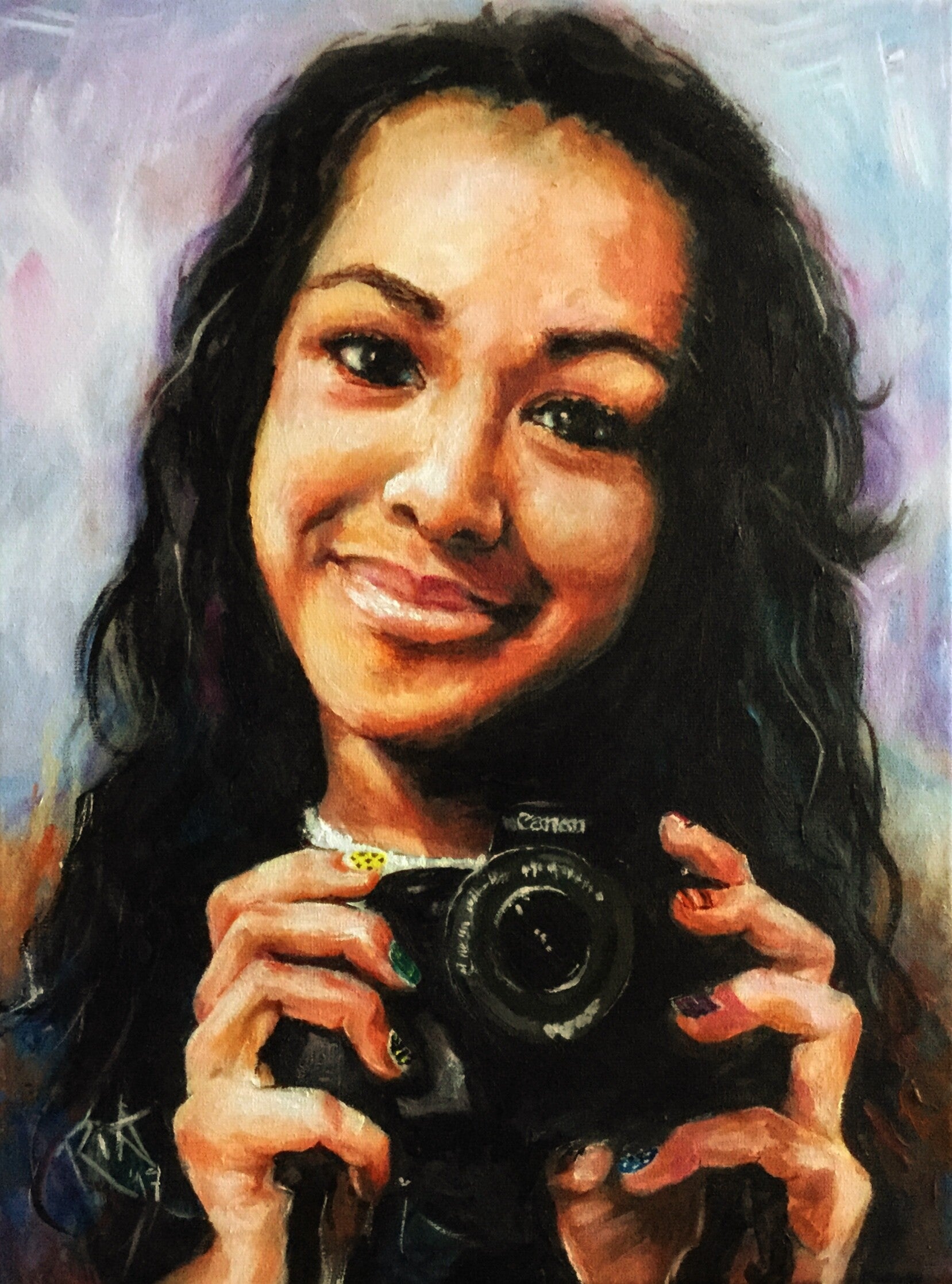 Op verzoek van de cliënt is dit portret geschilderd in de stijl van het werk van Henk Roozendaal (rechts)